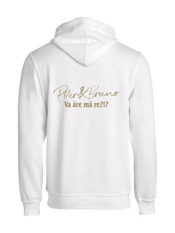 Vit HOODJACKA fram & rygg "P & B Va äre mä re?!?"