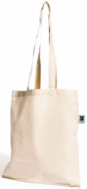 Bomullskasse med långa handtag som är gjord av bomull certifierad med Fair Trade.